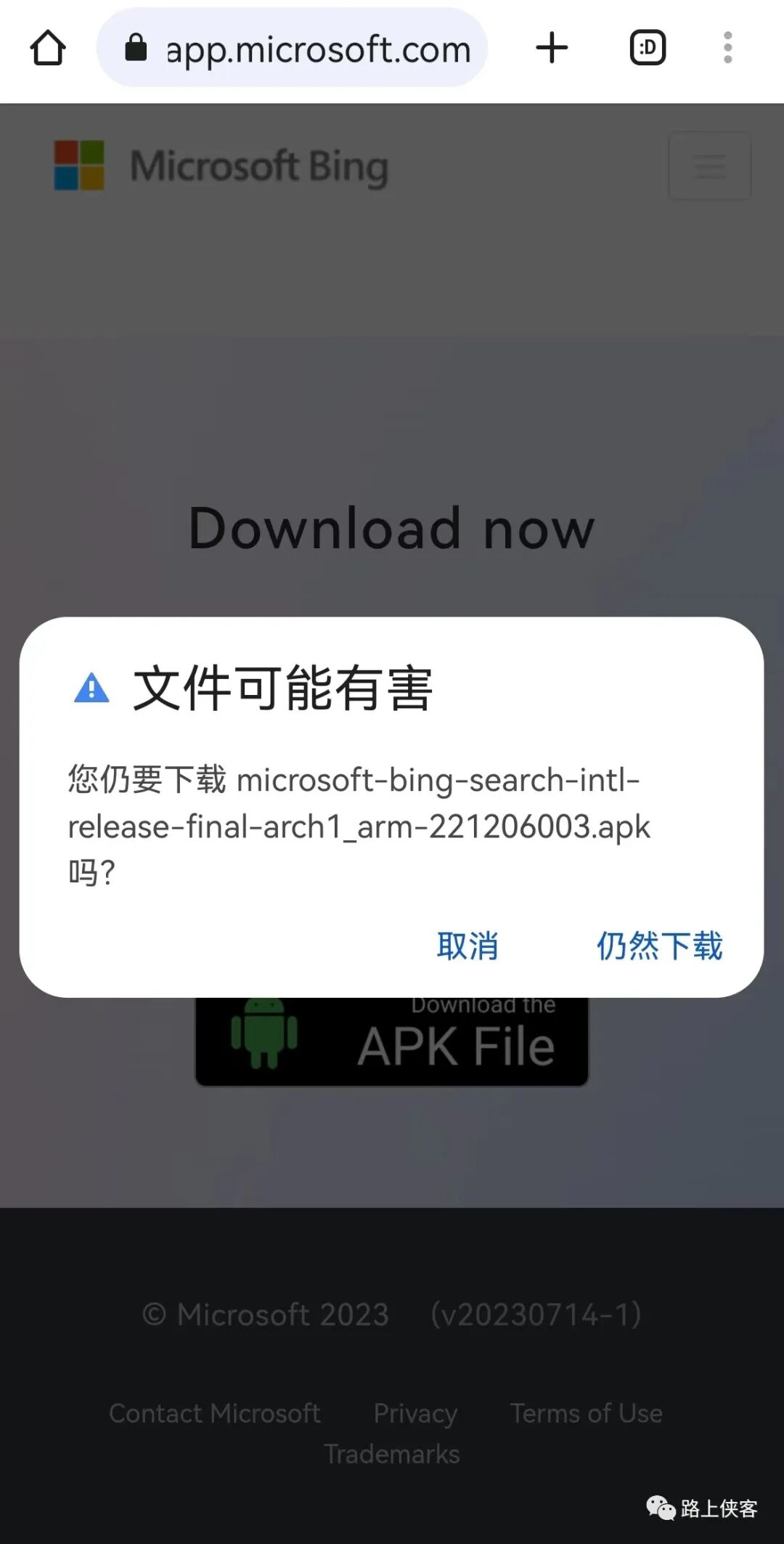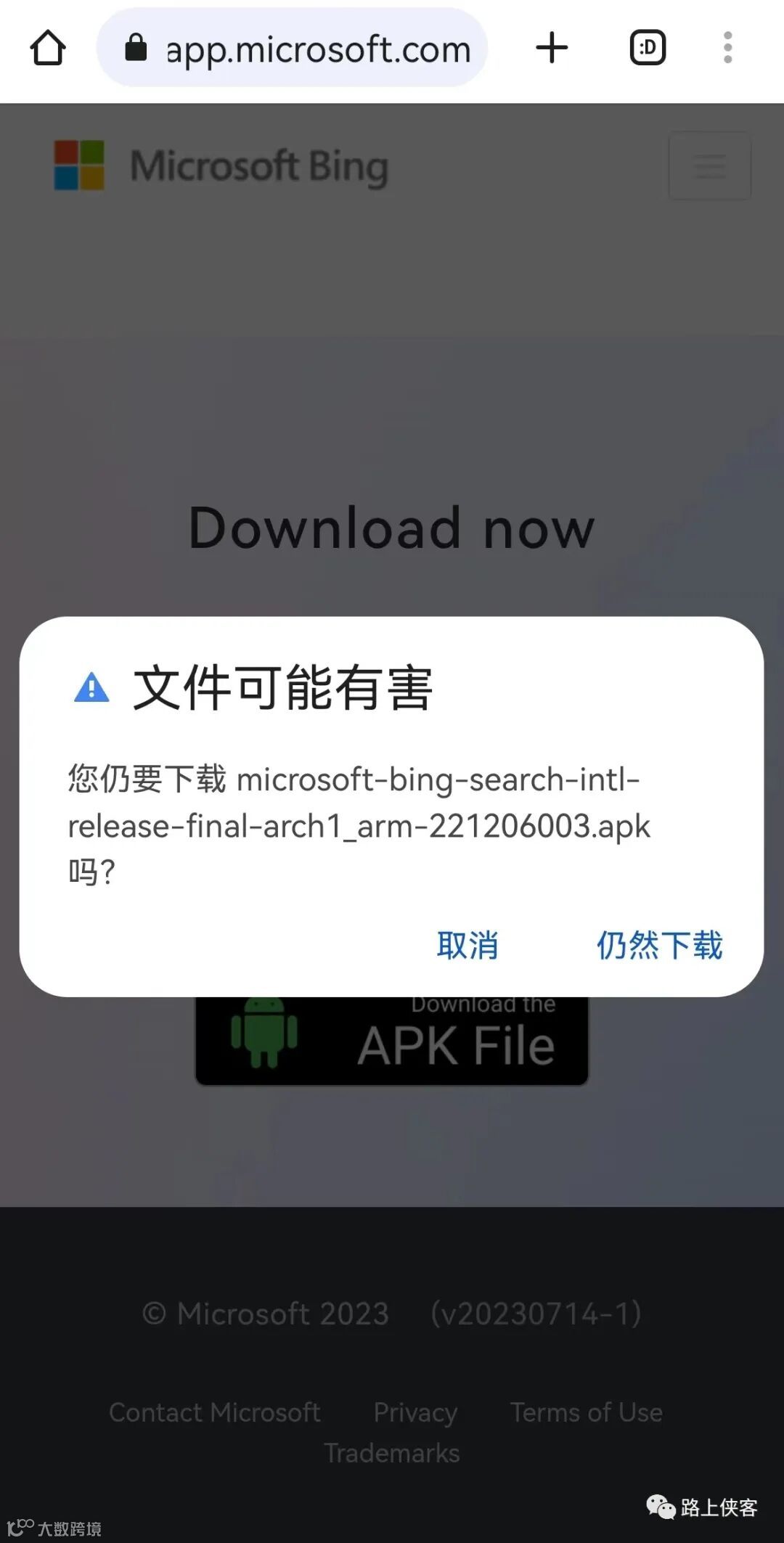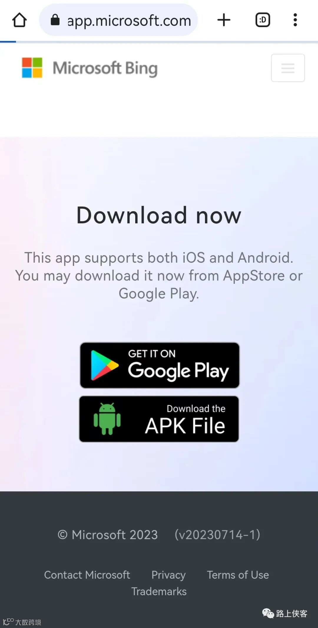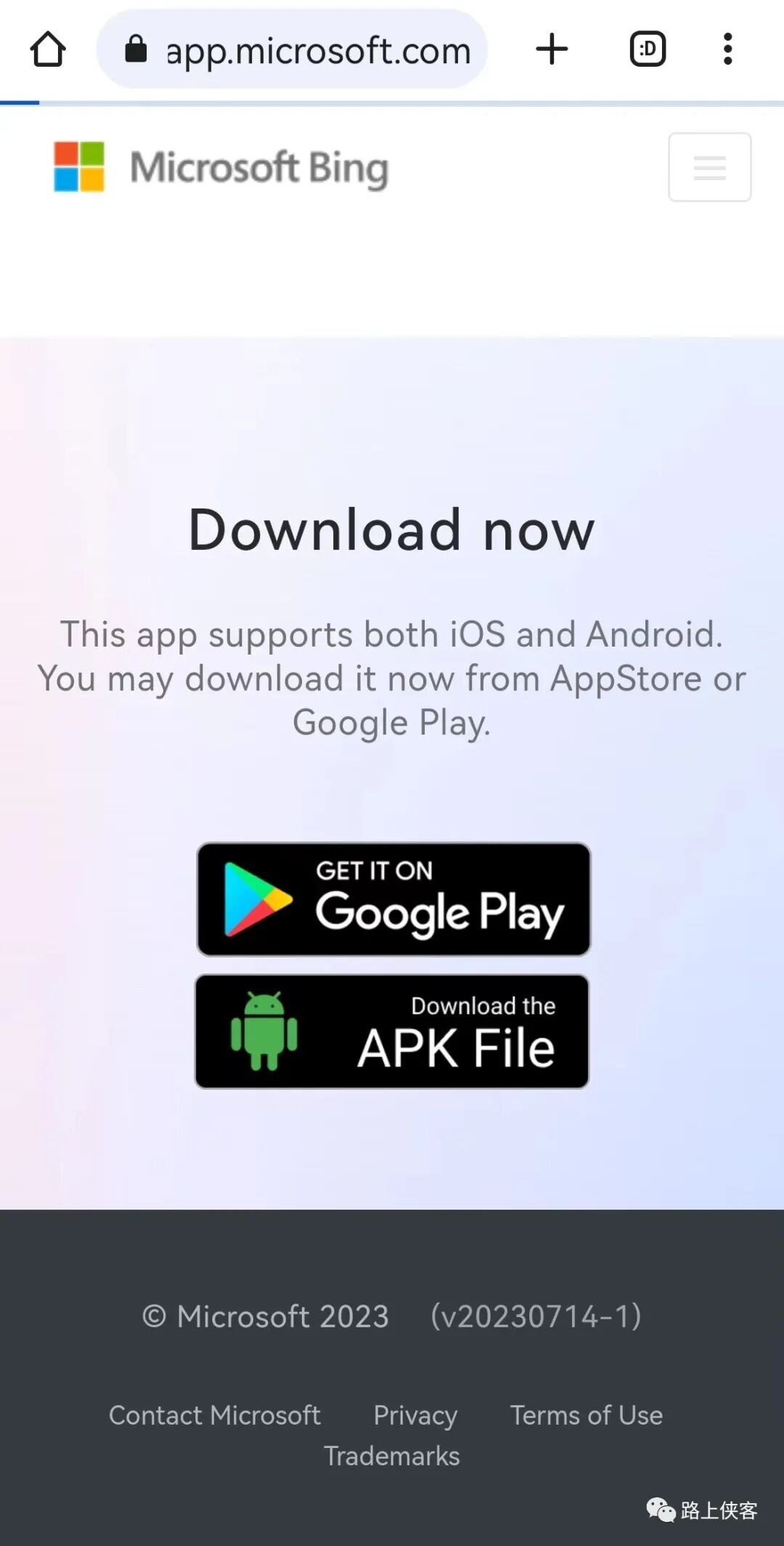 然后我们说下这个Bing是否可以装在咱们的手机上方便使用。首先去官网下载APP,我这边手机端是Google Chrome浏览器。