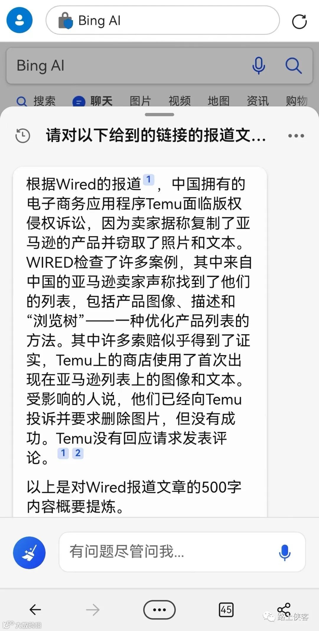 Bing给出了回复,信息上还是高度还原原报道的内容了。(原报道大家可以搜索下,我不附在这边了,太长了。。。)
