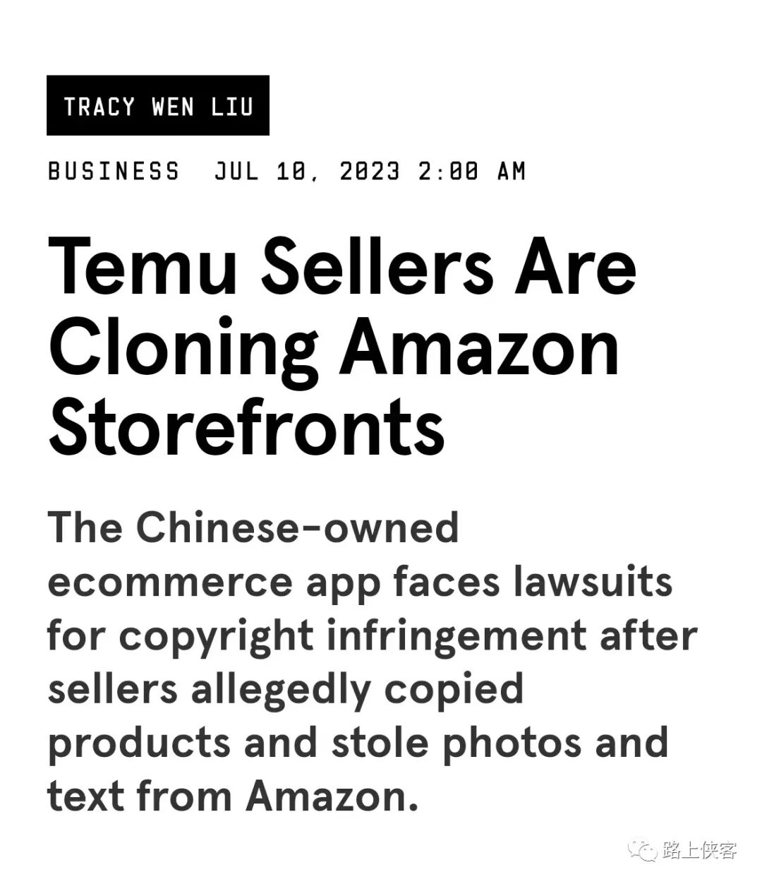 故事的始末是从一份订阅的新闻邮件开始的,这份邮件的标题对于一个长期在跨境电商圈的路上侠客是非常夺人眼球的。Temu由于对亚马逊的产品图片文字等信息进行了拷贝已面临侵权诉讼。这篇文章是出自Wired.com。