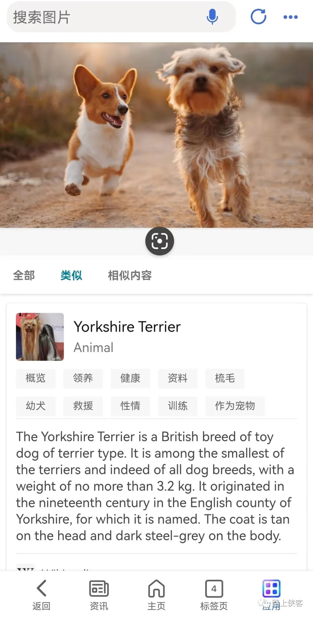 就小狗的这张图,它识别完,给到了这个小狗的一些介绍(类似维基百科)。
