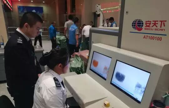 与成都发往西安的商品一并经过铁路部门安全检查后装上‘动检车’开往西安北站。