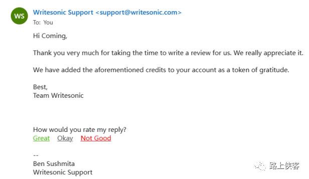 然后上面提到的这个评论后的额外使用额度,过了1天,官方邮件就回复了