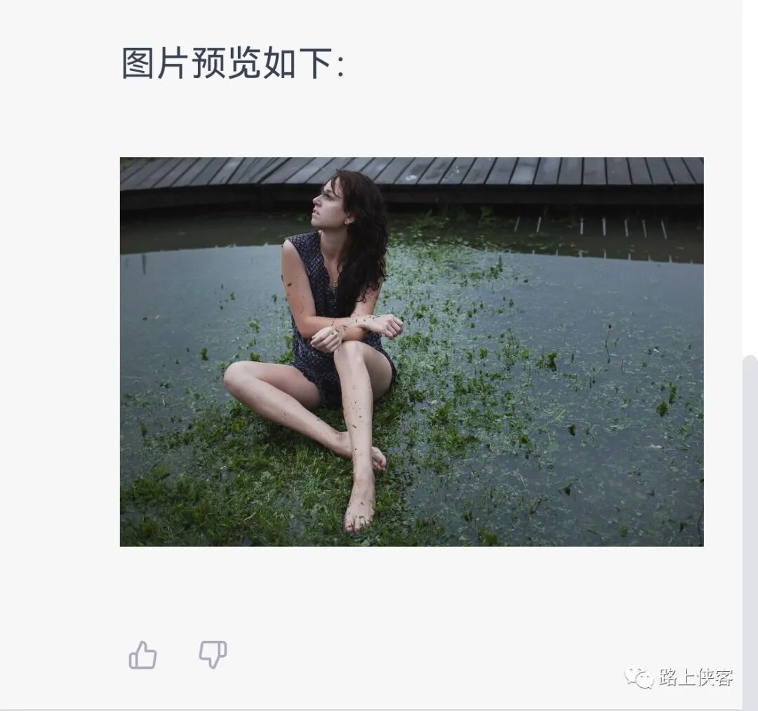 第八步,如果你对图片结果不满意,还可以直接通过原语句进行修改关键词再次提交。或还可以通过GPT的上下文理解,再次给到一条语句让其作业“please give me another picture of swimming pool”不过这次估计Unsplash给的太随机了啊。