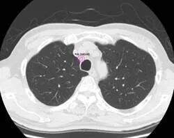 我们核心技术是一种显示结节的人工智能,通过在CT扫描获得的图像中的CT值显示最大直径为3厘米或更小的圆形、纺锤形或不规则边缘的吸收增加的ROI区域,提高结节阴影和其他ROI区域的可见度。