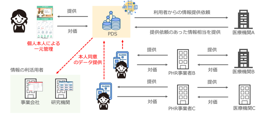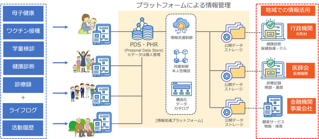 随着社会上PHR(Personal Health Record)服务的推广普及,各机构企业不可能只导入一种服务。因无法综合分析而导致无法提高医疗质量,成为核心医疗机构、地区医师协会、地方自治体的重大课题。为解决这一问题,本服务提供一种方式让个人自身能够管理通过多个PHR服务方获取的信息。以行政为主体,防止数字化引起的信息孤岛,更灵活地为居民提供具有共创性的服务。