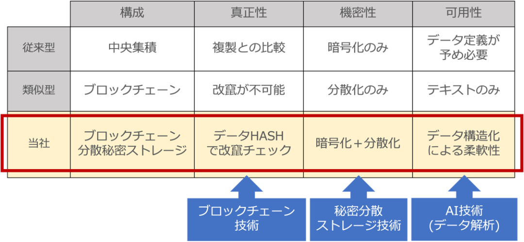 已获得使用区块链技术确保信息可信性的专利。在使用专利技术构筑的平台上进行服务合作,或者使用专利技术研发新的服务。