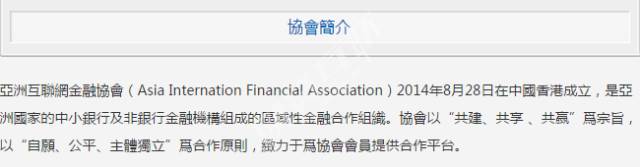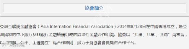 以“中”字开头,向来给人一种官方机构的错觉,十分容易给人造成一种信任感。该协会在百度百科的介绍是是全国金融机构、互联网机构以及从事互联网金融行业的企业、实体企业、社会团体和个人自愿组成的非官方、全国性、综合性、非营利性的社会团体。