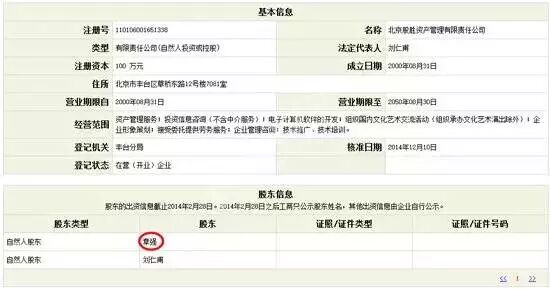 笔者在工商总局官网查询了这家公司的信息(如下图),其股东为章强和刘仁甫,而根据百度百科的介绍,中国互联网金融协会会长宏皓原名就叫章强。这么看下来,一切就比较清晰了:中国互联网金融行业协会是由宏皓(章强)开办的北京股胜资产管理有限责任公司成立的一个协会组织,由宏皓(章强)个人担任会长。