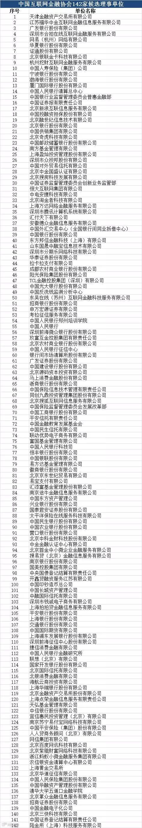 3月25日上午,中国互联网金融协会在上海举行成立大会。民政部、上海市领导、人民银行领导等出席致辞,李东荣作筹建工作报告。 根据会议资料显示,中国互联网金融协会第一届理事会理事候选人名单有142家,首批单位会员437家,其中292家为互金企业。