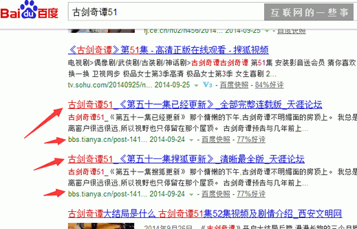 我们常说的高权重平台指的是一些高权重的论坛、微博等。例如:天涯、豆瓣,优酷、贴吧等等。先看一个利用高权重平台进行网络推广的例子。例如:在百度搜索“古剑奇谭51”。