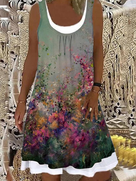 Summer,Plus Size,Necks,Dresses,Dress,Loose,Round neck,long dress,Women's Fashion,Sleeveless dress,slingdres,printed,sleeveless,Casual,Women