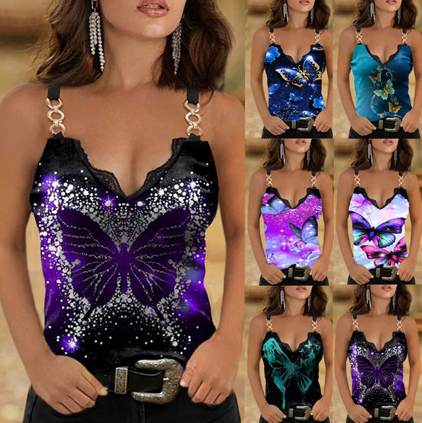 butterflyprint,Summer,sleeveless,Fashion,butterfly,Lace,WomenVest,Tank,Tops,Vneck,Print,tanktop,womentanktop,Ladies,sexy,Ladies Fashion,Casual,Women Fashion,sleeveless tops
