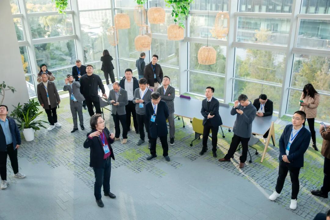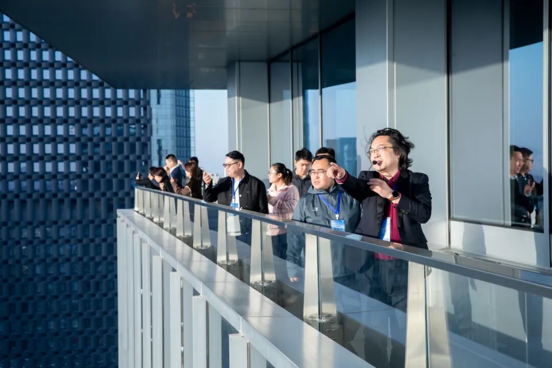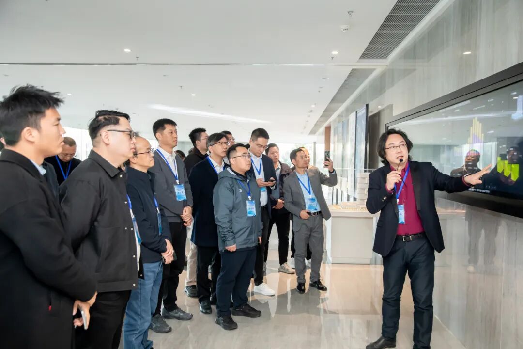 会议期间,企业家们在启迪设计总裁张斌的陪同下实地参观了启迪设计大厦。这座建筑不仅是绿色健康智慧的高品质示范项目,也是启迪设计“全过程、全专业、全生命周期”技术理念的生动体现。在参观过程中,与会企业家对启迪设计大厦的创新设计思想、先进的绿色低碳技术以及智慧运营成果进行了详细的了解和交流。