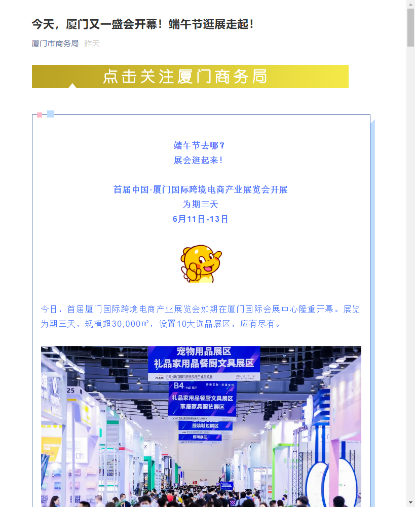 2021年6月13日,为期3天的中国厦门跨境电商展会,在厦门国际会展中心圆满落幕。