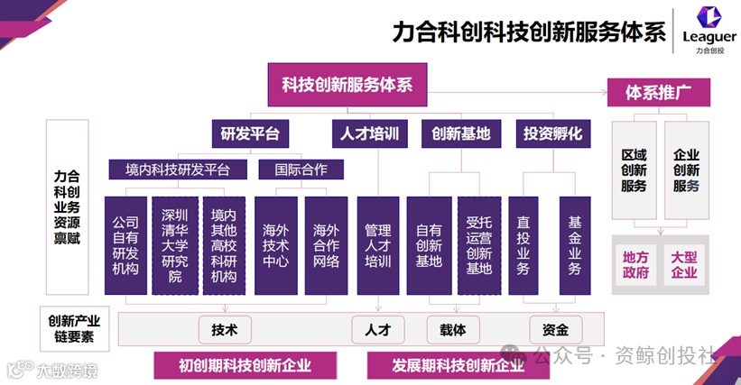 以清华系投资佼佼者——力合科创为例,深圳清华大学研究院作为投资项目孵化和汇集项目的载体,承担科技研发和科技成果前期转化,由力合科创公司负责成果转化落地及发起设立的公司并全方位对公司的发展孵化赋能,将企业从诞生链接到人才输送、管理培训、研发交流等一系列科技企业发展所需的框架涵盖,运用力合创投进行投资,耐心陪伴科技企业成长。