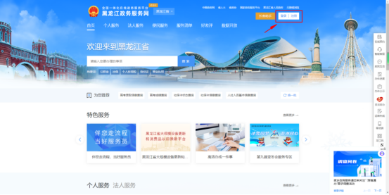 第一步,电脑端打开“黑龙江政务服务网”(https://www.zwfw.hlj.gov.cn)),注册并登陆。