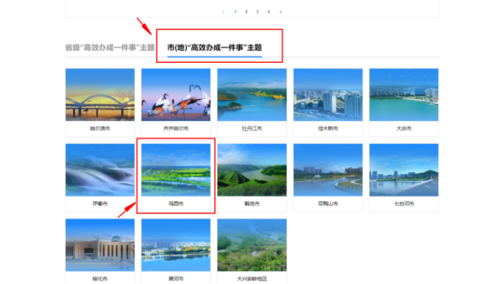 第四步,在市(地)“高效办成一件事”主题处,找到鸡西市,点击进入。