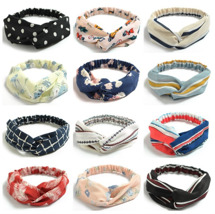 产品名称:韩版四季松紧交叉雪纺女士发箍百搭瑜伽洗脸发带外出头带发饰批发