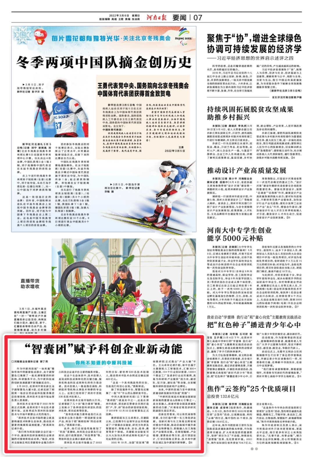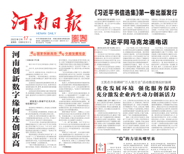 河南日报头版头题刊发文章《河南创新数字缘何连创新高》,关注河南省技术合同交易,对郑州技术交易市场进行了报道。