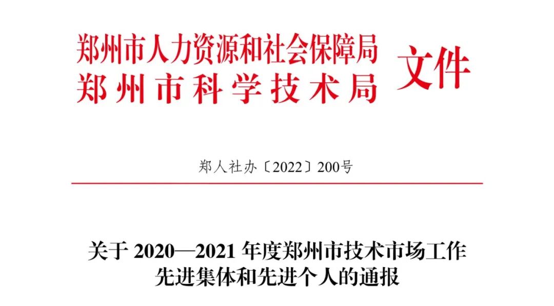 由郑州市人社局和郑州市科技局联合评选的2020—2021年度郑州市技术市场工作先进集体名单公布,启迪科技服务集团获表彰。