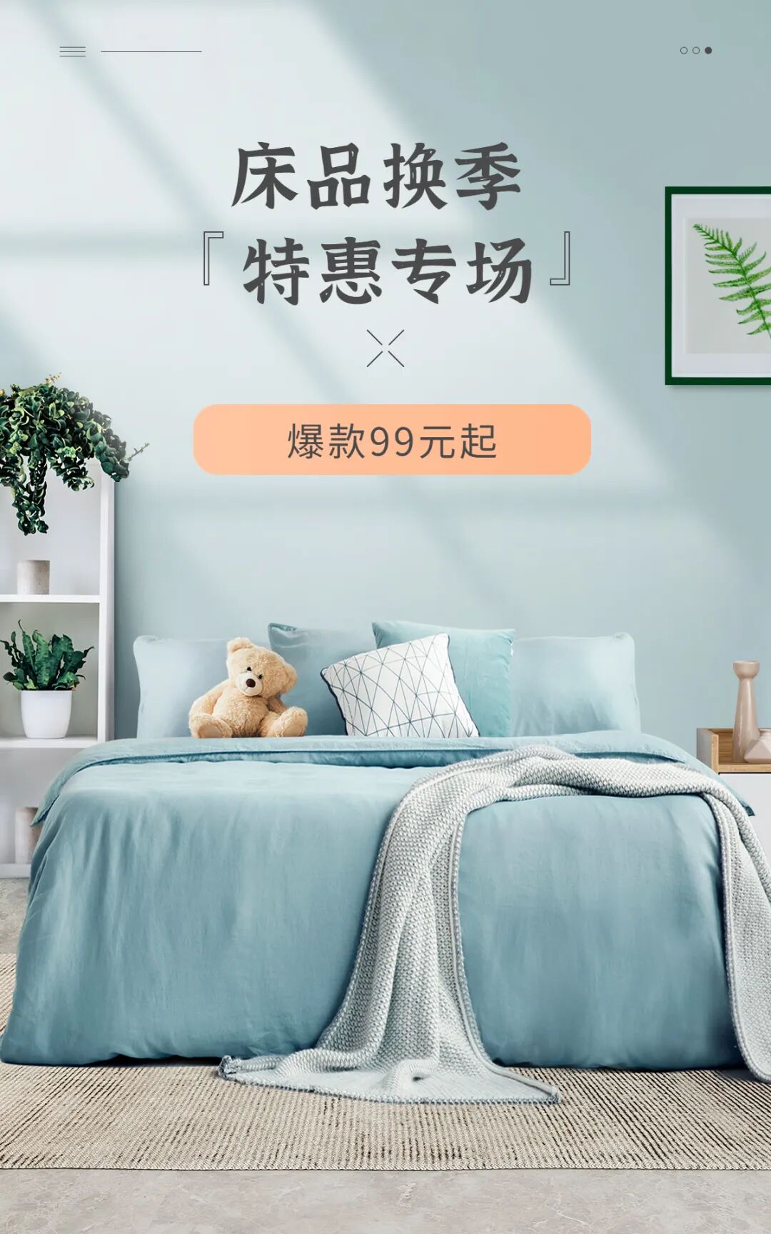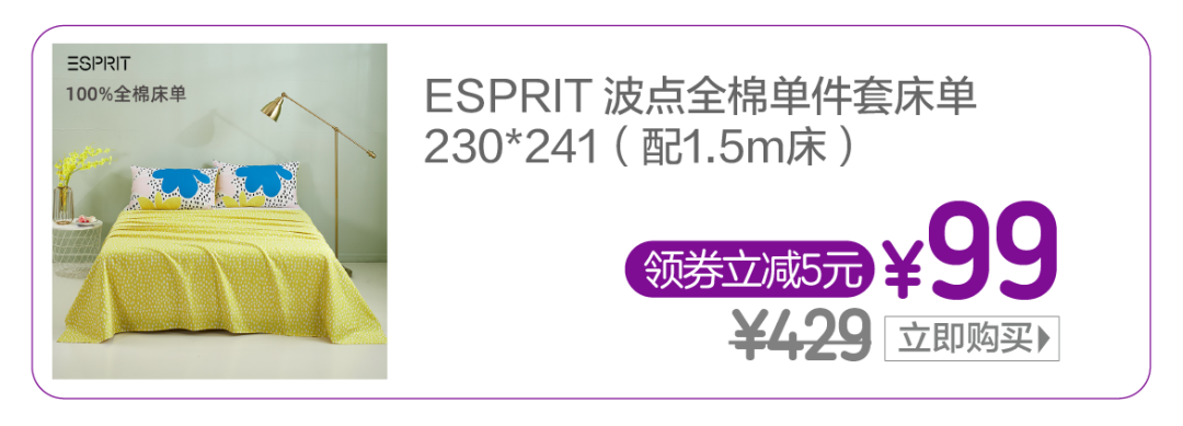 床品专场 |方巾¥9.9;对枕¥49;四件套199