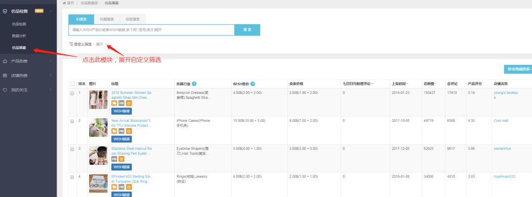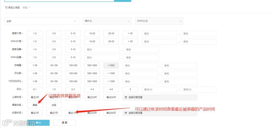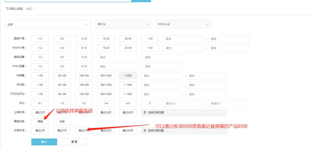 WISH屏蔽商品的表现在于几点: