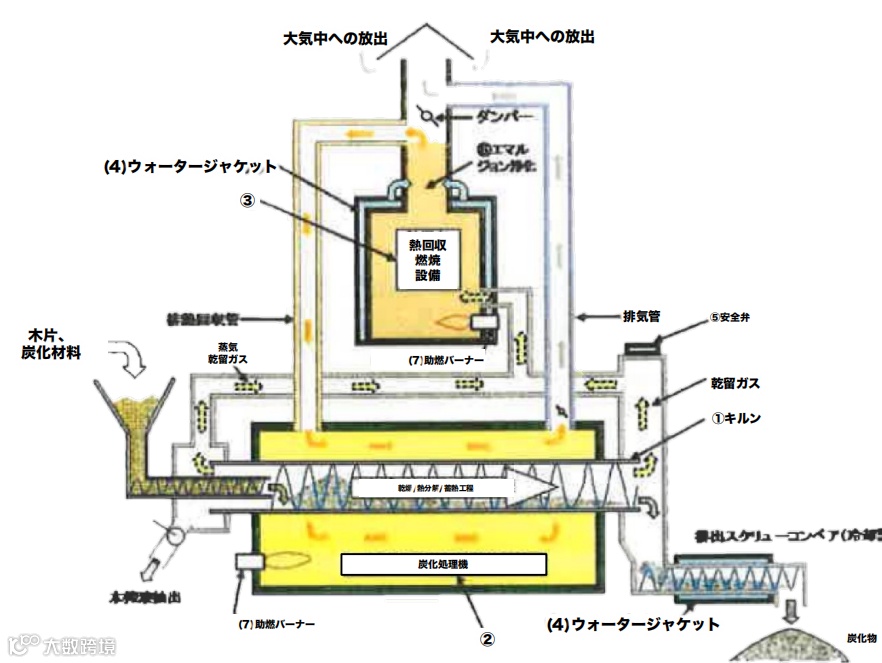 连续式炭化炉(直接加热过热水蒸气式)大大降低发生爆炸的几率、降低排出气体清洁化的成本 等。 -
