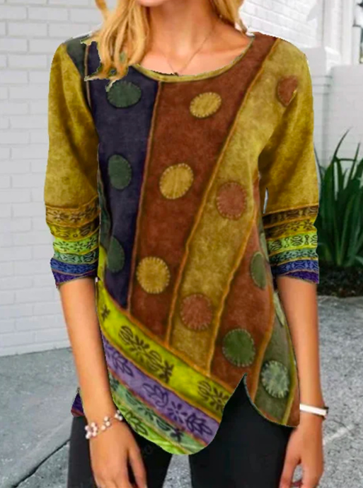产品名称:欧美爆款ebay速卖通 wish亚马逊 拼接印花多色印花长袖休闲T恤 女
