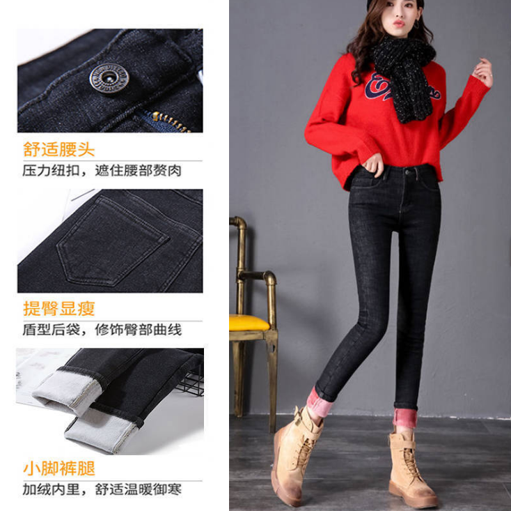 标题:Winter Warm High Waist Velvet Jeans for Ladies To Wear Tights Warm for Ladies Denim Pencil Jeans Women's Thick Winter Pants