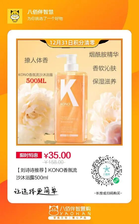 洗护狂欢|低至5折;洗发水¥19.9;身体乳¥29.9;KONO买一送一