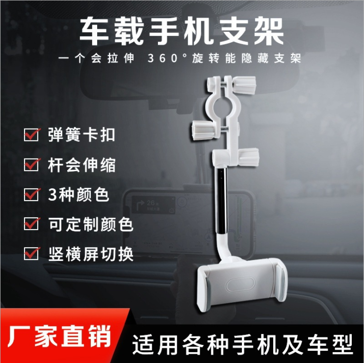 产品名称:工厂直销车载后视镜手机支架多功能通用多功能支架车载导航固定夹