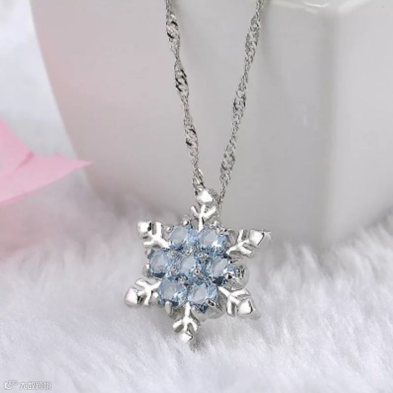 12.产品名称:冰雪奇缘天然宝石项链 镀银水晶雪花项链圣诞礼物吊坠(点击直达1688)