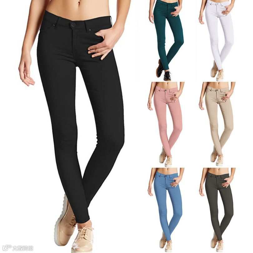 标题:6 Color Plus Size Women's Casual High Waist Solid Color Skinny Pants Casual Style Pencil Pants Women Tight Long Cowboy Jeans