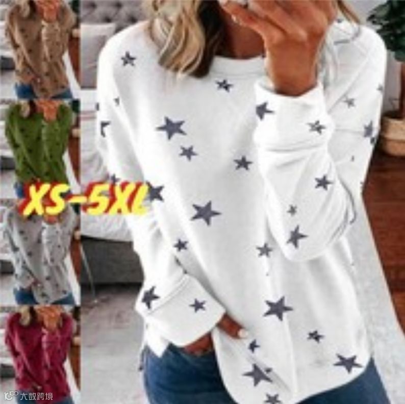8.产品名称:Wish亚马逊速卖通 2019欧美爆款印花五角星长袖T恤 卫衣上衣(点击直达1688)