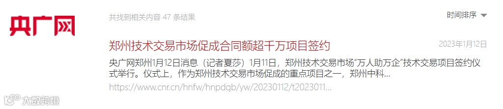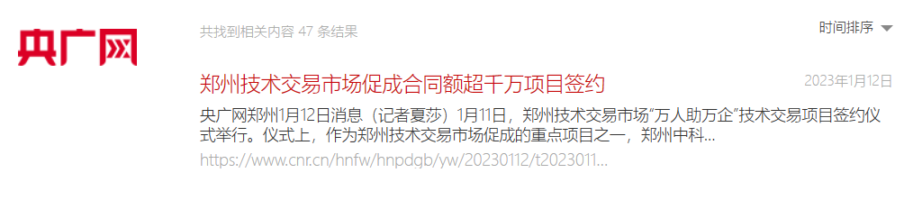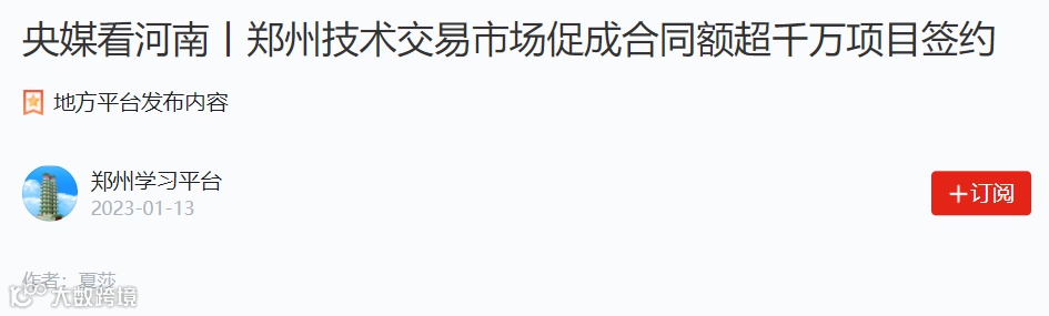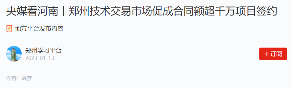 1月12日至19日,新华社、学习强国、央广网相继报道郑州技术交易市场千万大单