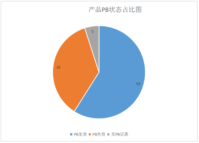PB生效产品59个,PB失效产品36个,有5个产品是至始至终没开过PB,不过都是18年之前的产品。