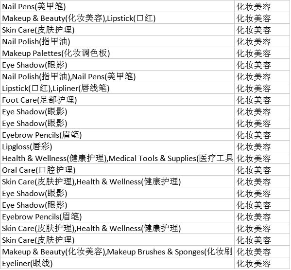 ◎化妆美容,占比最大,达到23个,经过分析小编得到包括这些细分类别