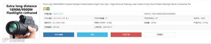 卖家售价$10+3,13+3,wish售价18+5,20+5,评分3.77,具备海外仓状态,且PB生效。