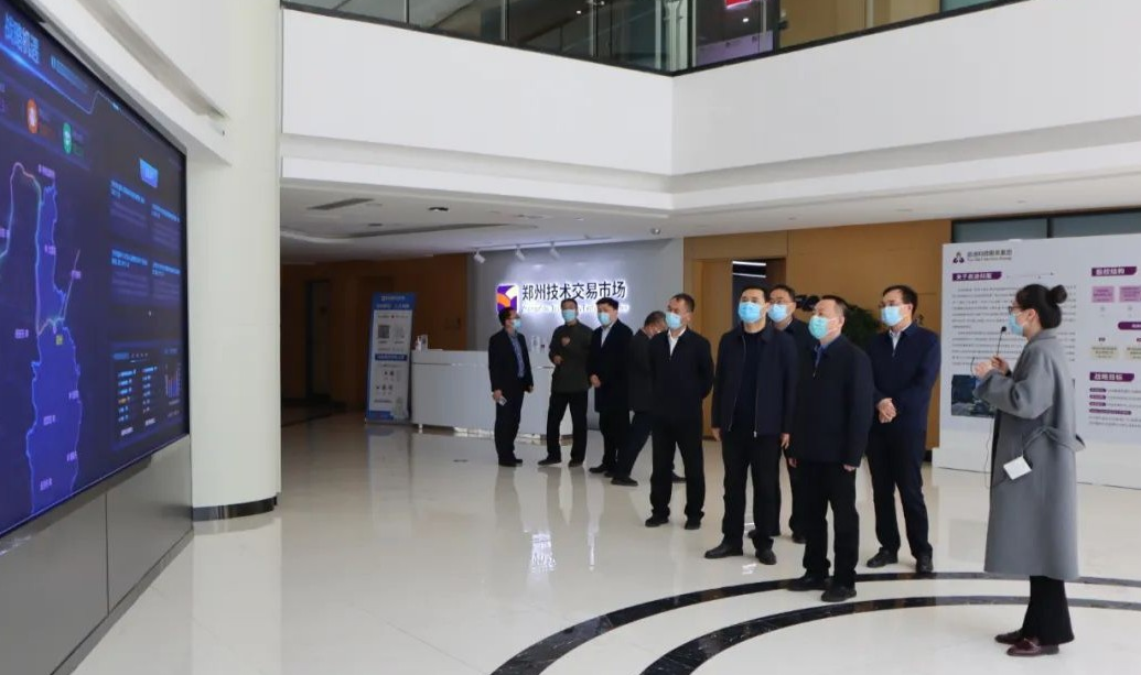 座谈后,一行人员来到中原龙子湖智慧岛参观了郑州技术交易市场,详细了解了技术交易市场的建设、运营等情况。