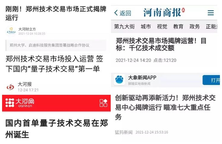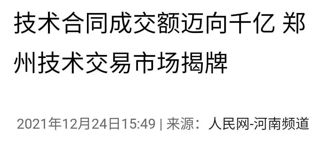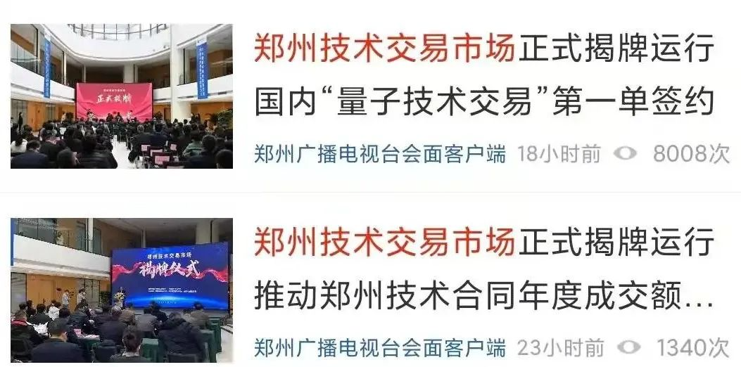 ▲ 河南卫视播报《郑州技术交易市场今天正式揭牌》