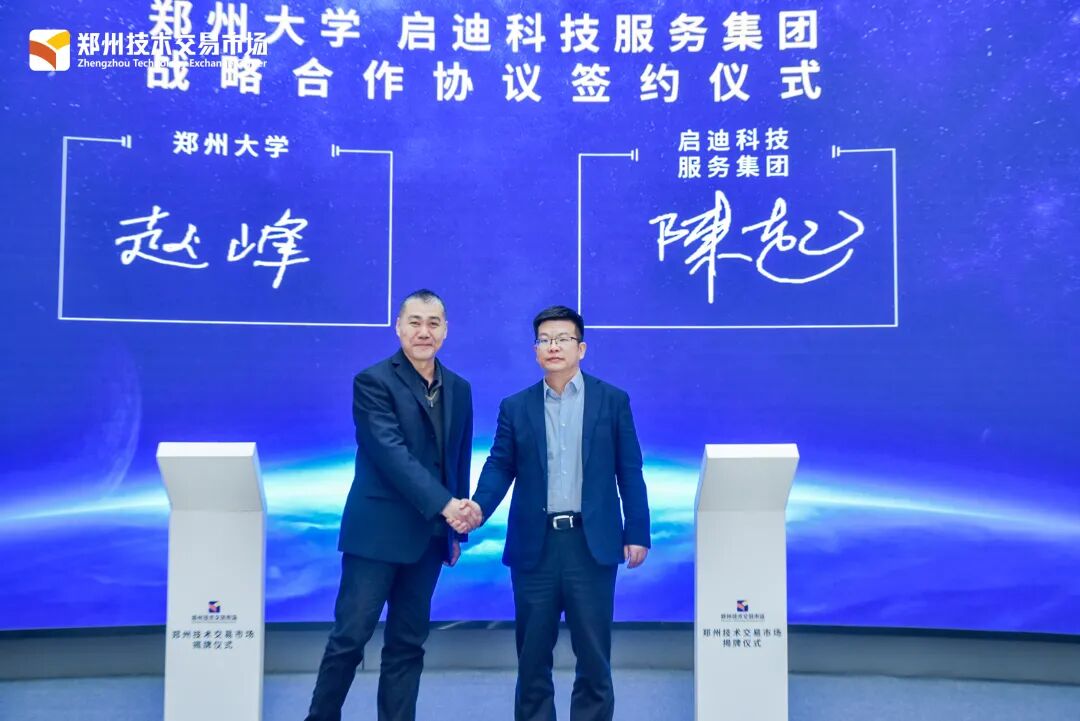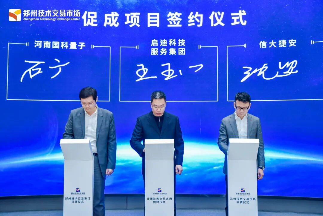 原中国科协常委、党组成员、书记处书记宋军,河南省科技厅二级巡视员李密科,郑州市副市长史占勇,启迪控股股份有限公司总裁蔡晓卫出席仪式并共同为郑州技术交易市场揭牌。