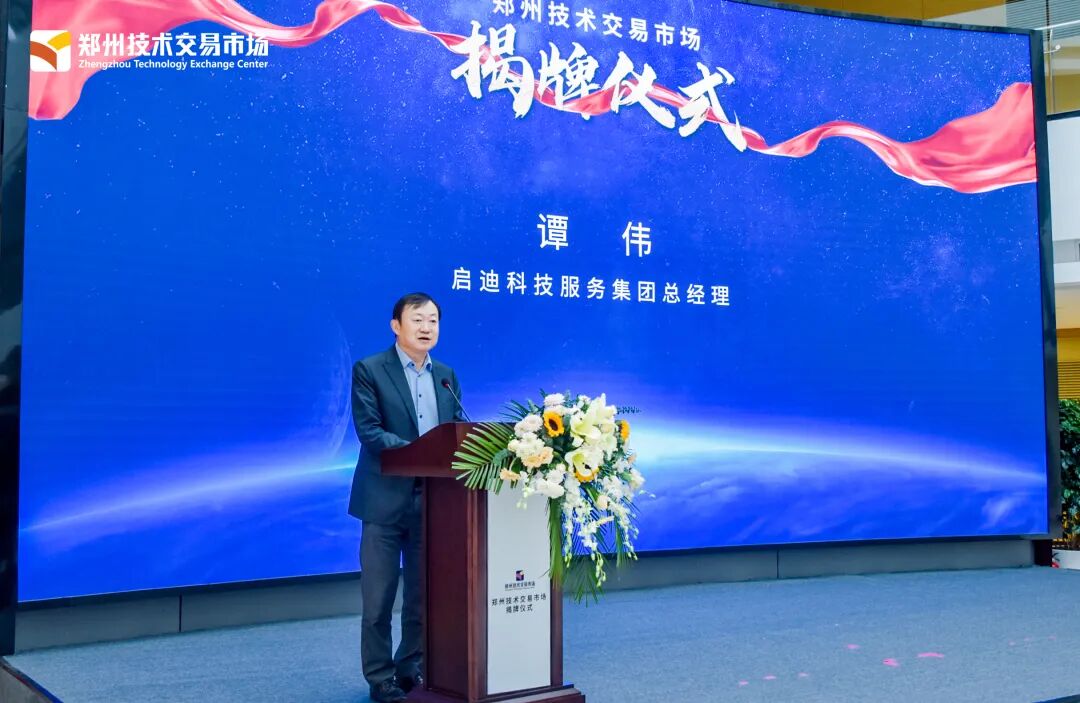 启迪科技服务集团总经理谭伟致辞时感谢郑州市政府的信任和支持,他表示,启迪科技服务集团总部落户河南一年多来,充分发挥自身科创集群的优势,在科技企业孵化、创新网络建设、名校大所和高层次人才引进等方面取得一系列丰硕成果。郑州技术交易市场正式揭牌,又吹响了启迪科技服务集团进军技术要素市场建设的号角。启迪科技服务集团将紧紧围绕郑州市重点产业和高新技术产业需求,发挥遍布国内、延伸海外的全球创新网络和科技孵化优势,推动郑州技术交易市场高水平建设发展,实现创新要素的广泛汇集和高效配置,为河南加快构建“一流创新生态”、建设国家创新高地不断贡献“启迪”力量。