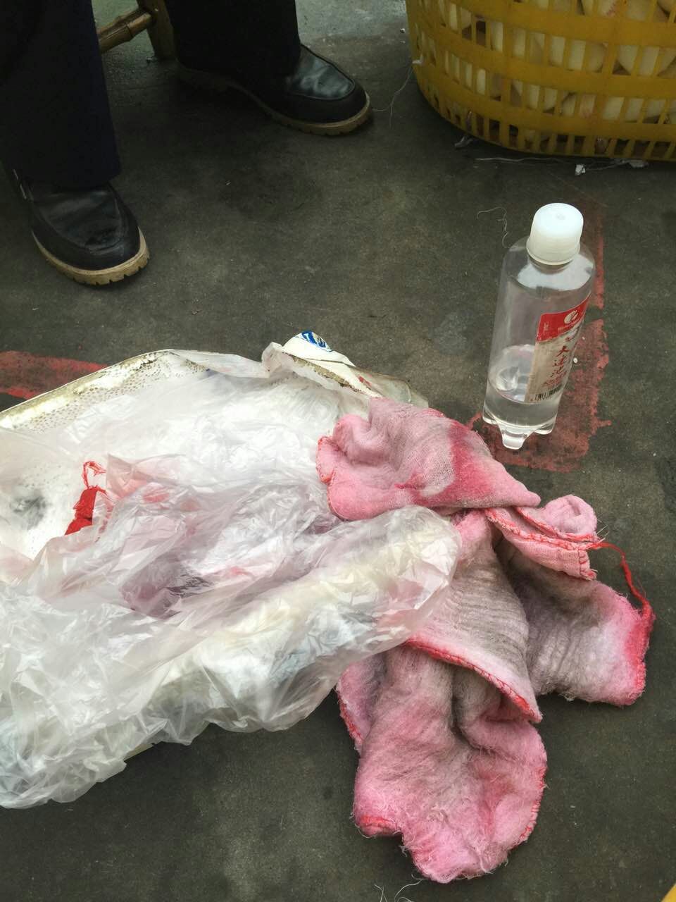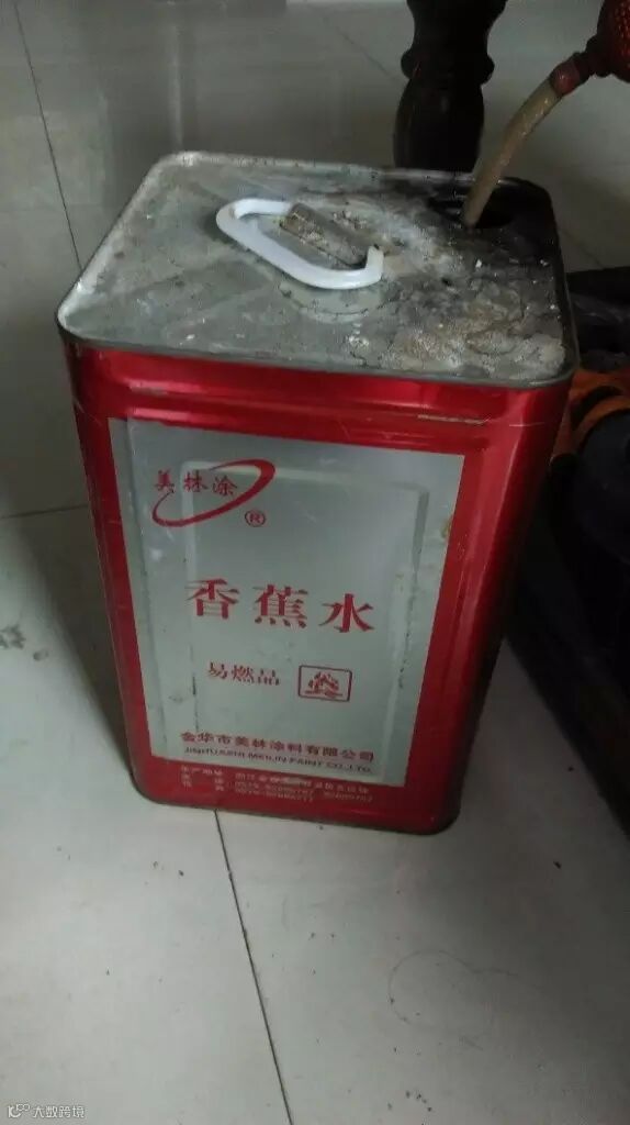 走进生产车间,混乱的场面让检查人员大吃一惊:在仓库西南角,民警发现用来专门擦洗红色喷码的香蕉水,地上散落着蘸有香蕉水的红色抹布。