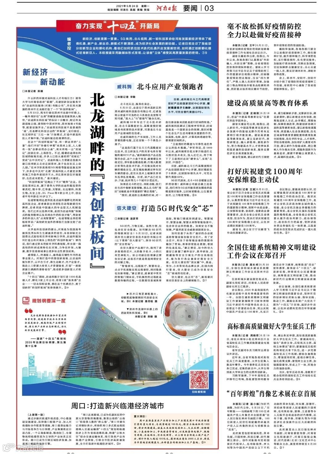5月23日,驾车行驶在郑州市龙湖中环路上,一幢外观好似“虫洞”的螺旋曲线造型建筑映入眼帘,“启迪郑东科技城”的标识十分醒目,附近有龙湖湿地公园、清华附中郑州学校、郑州地铁4号线等,配套设施齐全。“启迪郑东科技城不是普通的‘城’,而是孵化科创企业的‘样板间’,实行园区、社区和学区‘三位一体’开发模式,打造中原高科技人才集中地。”启迪科服总经理谭伟说。
