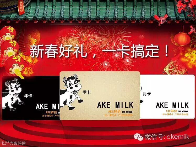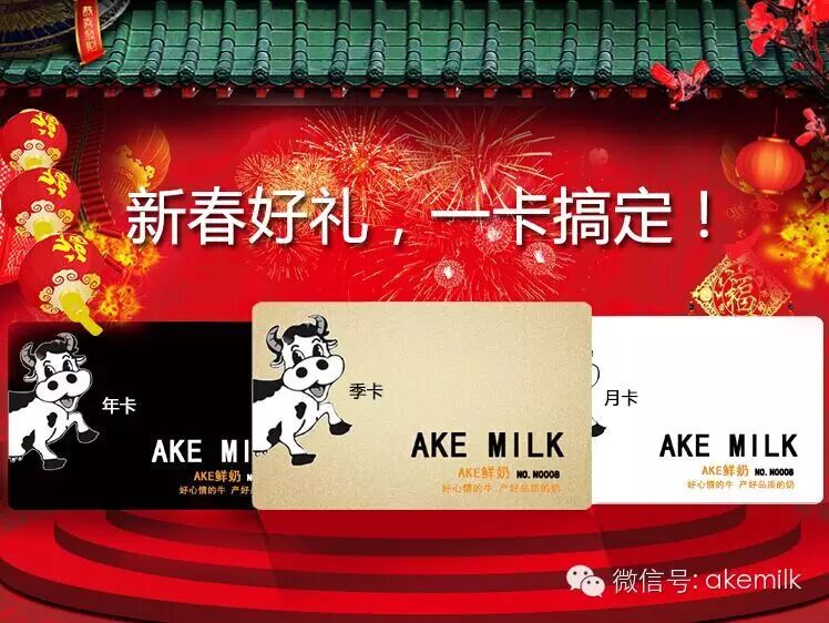 牛气冲天鲜奶礼品卡火热发售中!!送亲人,送朋友,送领导,送同事,一卡在手,送礼无忧,享高端贵族服务,就买新西兰AKE巴氏鲜奶。
