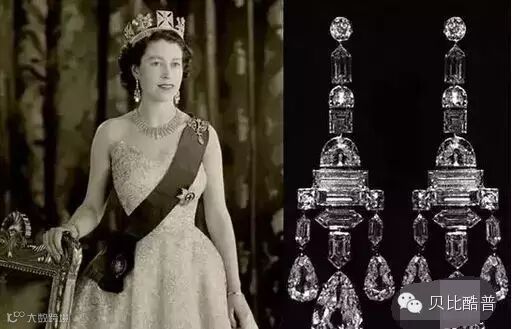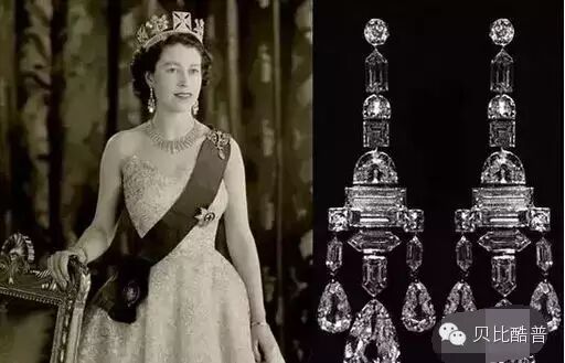 先说说这一副耳坠,这幅耳环应当是这顶王冠的标配。但是昂贵程度么?只能用女王的另一副最出名的耳坠类比一下。