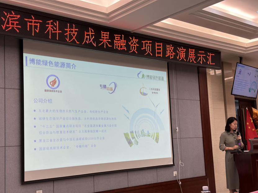 参会的五个项目分别是:哈尔滨博能环保科技有限公司的“有机废弃物低碳利用综合服务”项目、哈尔滨金士佳科技发展有限公司的“金属表面处理系列产品的研发与应用”项目、哈尔滨金沃德生物科技有限公司的“肠寿后生元高效安全调理肠道微生态”项目、康拜鹰朗(黑龙江)环保科技发展有限公司的“秸秆板及鉰草生产”项目、黑龙江大脑天宫文化传媒有限公司的“一城一剧”项目。