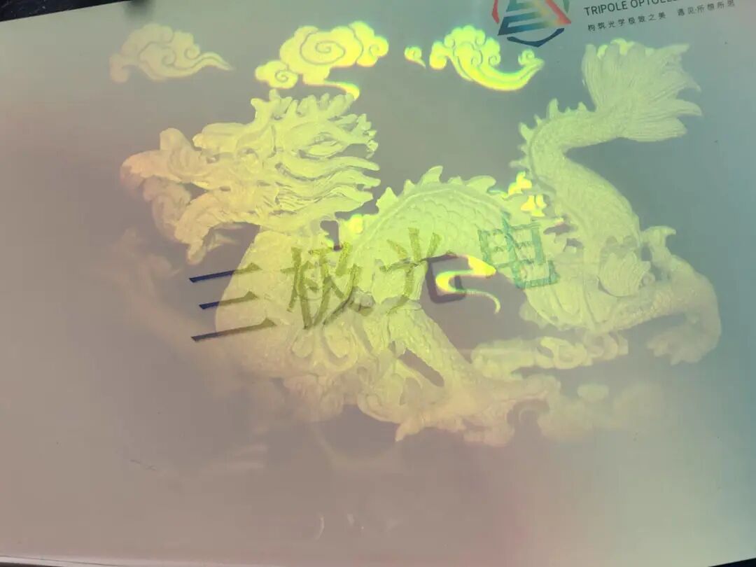 全息术是实现3D显示的终极方式。此次展出的反射式的全息图采用了新的全息曝光记录方式,呈现出大景深、分辨率高的三维显示。全息光敏光刻材料是全息显示的关键,所谓一代材料,一代装备,一代产业,材料是产业的基础,这是国际共识,全息衍射光学作为新一代半导体,全息感光材料对于全息衍射光学的意义重大,作为光刻胶的一种,跟传统半导体在紫外、深紫外波段感光不同,它主要在400纳米到700纳米的可见光范围感光,且曝光光刻后即是产品,对多光谱的感光性、吸收光谱的灵敏性、制程后产品的环境严苛性要求极高,数十年来受制于人,欧美至今对我国禁售,三极光电团队三十年如一日在全息衍射光学方向深耕,在此领域打破国际垄断,在材料工艺、制程工艺取得了不逊色国际巨头的成果。三极光电公司在全息感光光刻材料领域攻克了多项技术壁垒,不断研究创新,自主研发了可多波长感光的全息材料,被广泛用于航空航天、车载显示、精密测量、消费电子端等领域的核心光器件中。