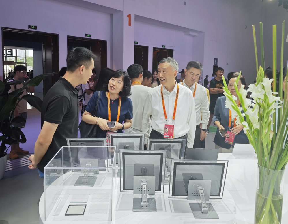 9月3日上午,江苏省副省长方伟出席“投资中国年−服务业扩大开放推介大会”,会后考察调研江苏展区,勉励参展企业充分发挥服贸会平台作用,做好展览展示,积极寻求合作,深入开展洽谈,达成更多务实成果,江苏省商务厅副厅长姜昕到访三极光电展台进行深入交流。