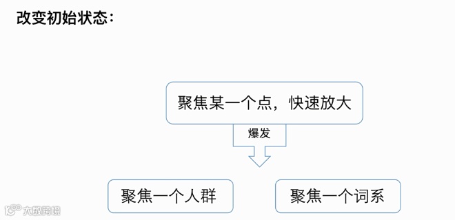 在商品运营推广过程之中,最终要的两个核心就是词和人群,我们在做突破的时候要抓住精优于专的思路,聚焦在其中的一个点上,来进行快速放大优势,实现质的突破。